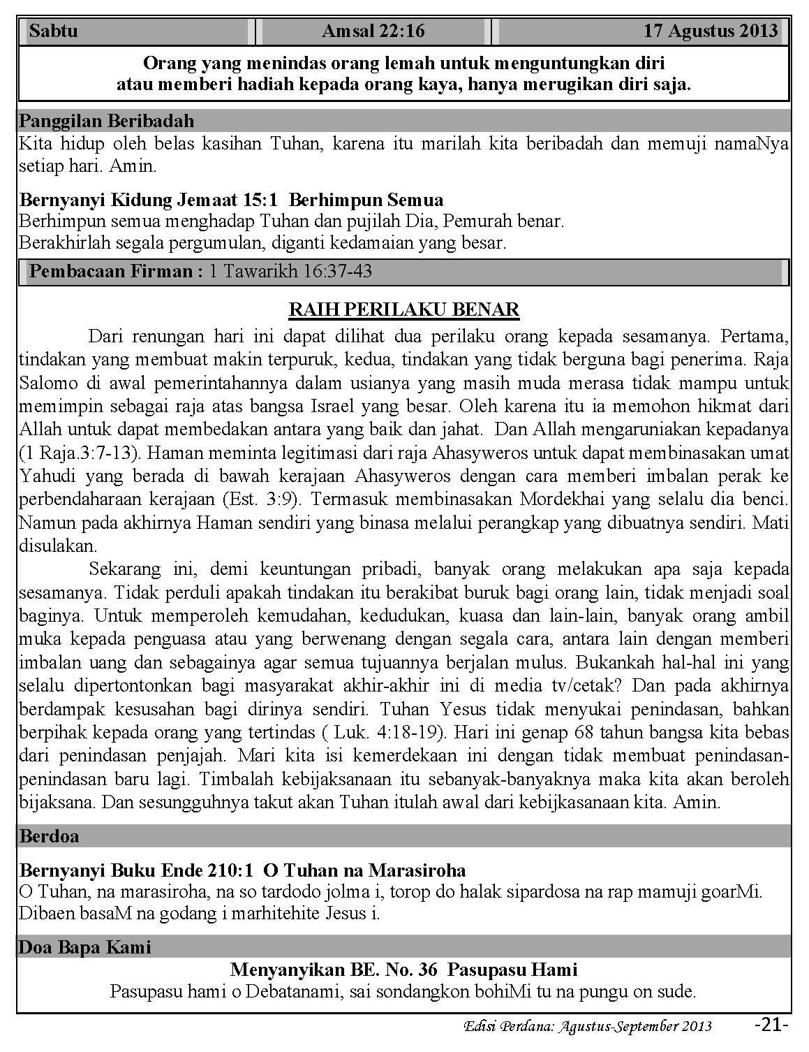 IBADAH HARIAN – 17 AGUSTUS 2013