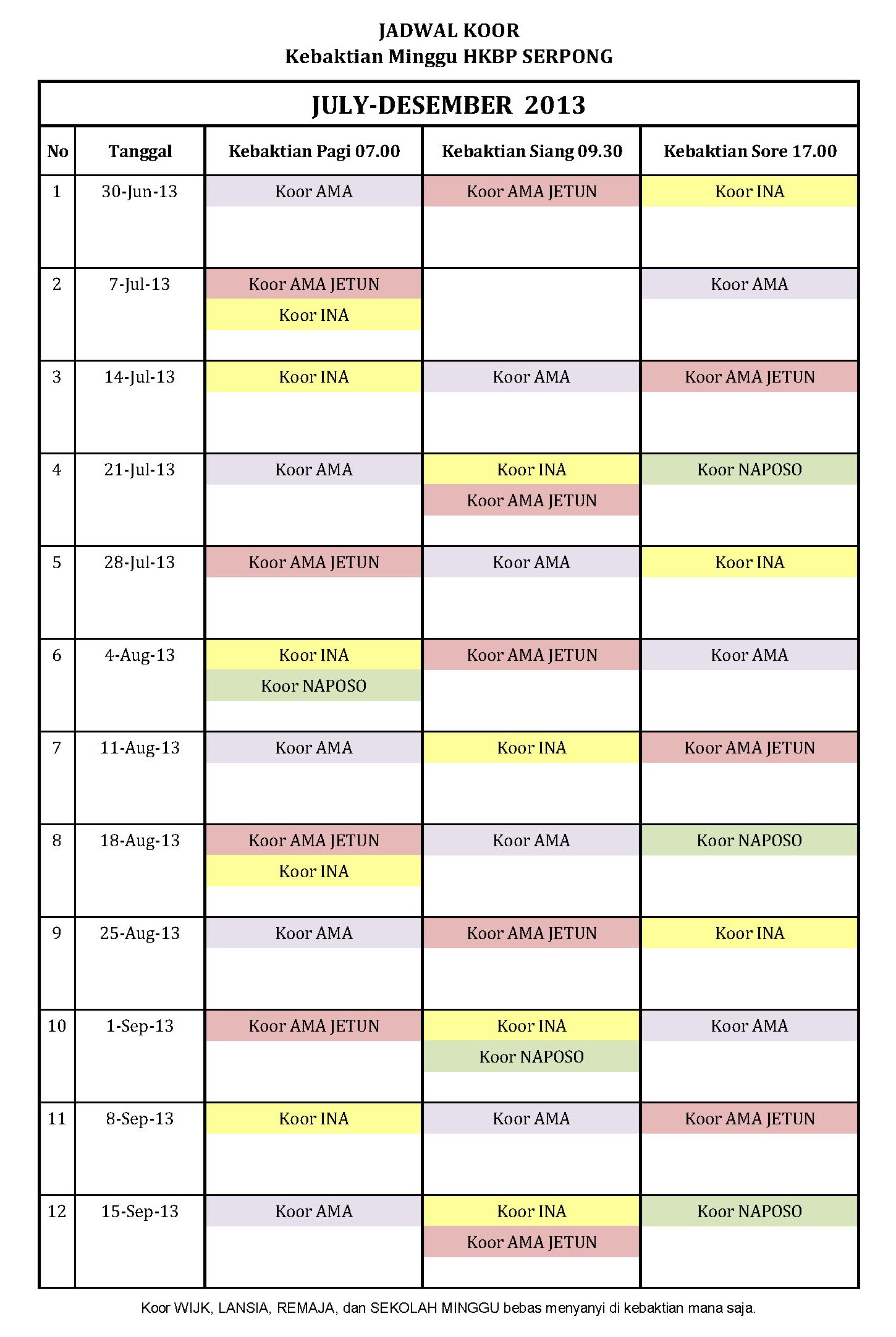 07.00 Sekolah Minggu: